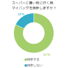 アンケートの結果、マイバッグを持参する人が多い一方で、1割の人が持参しないと答える結果となりました。